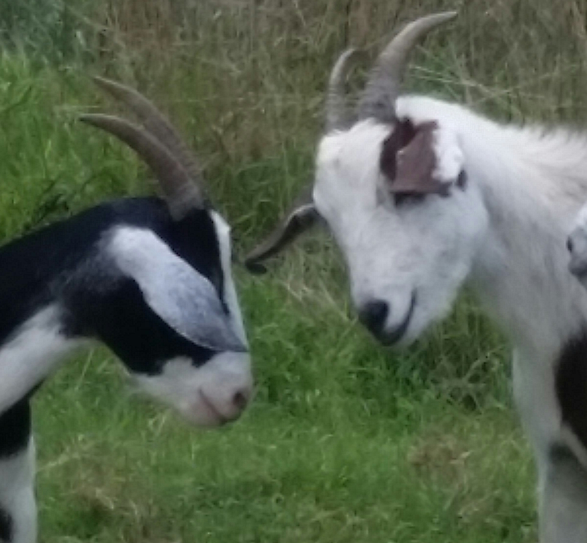 Catching goats is worse than herding cats. With their sharp horns and cheetah-like sprints, we quickly tired of grabbing horns and chasing them like a rogue version of a ninja warrior television show. Animal scientist, Temple Grandin calls goat horns the “no-fly zone” for human touch.