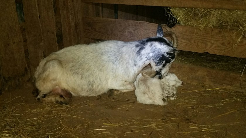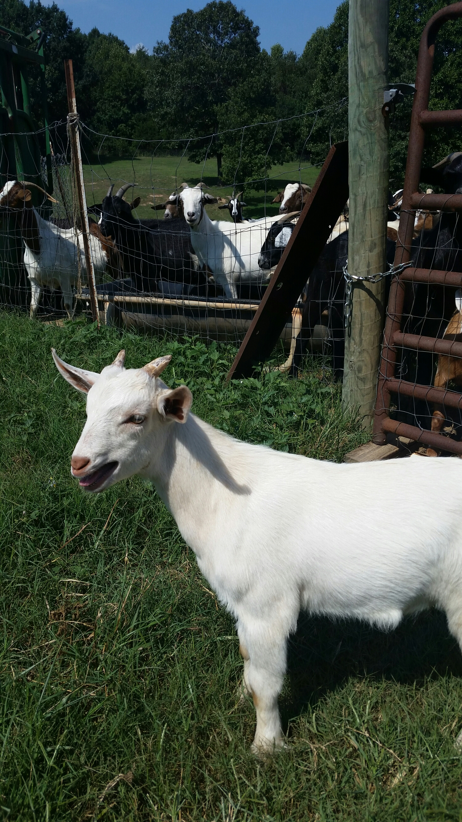 We welcomed 2 new goats to the farm.. Sam, the yearling buck, and a yet to be named year-old female who happens to be Faith Hill’s daughter.