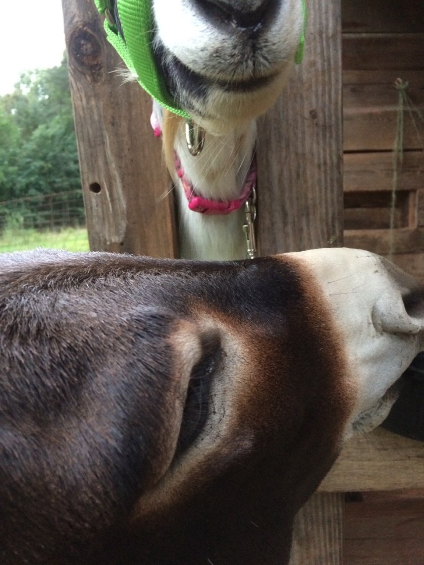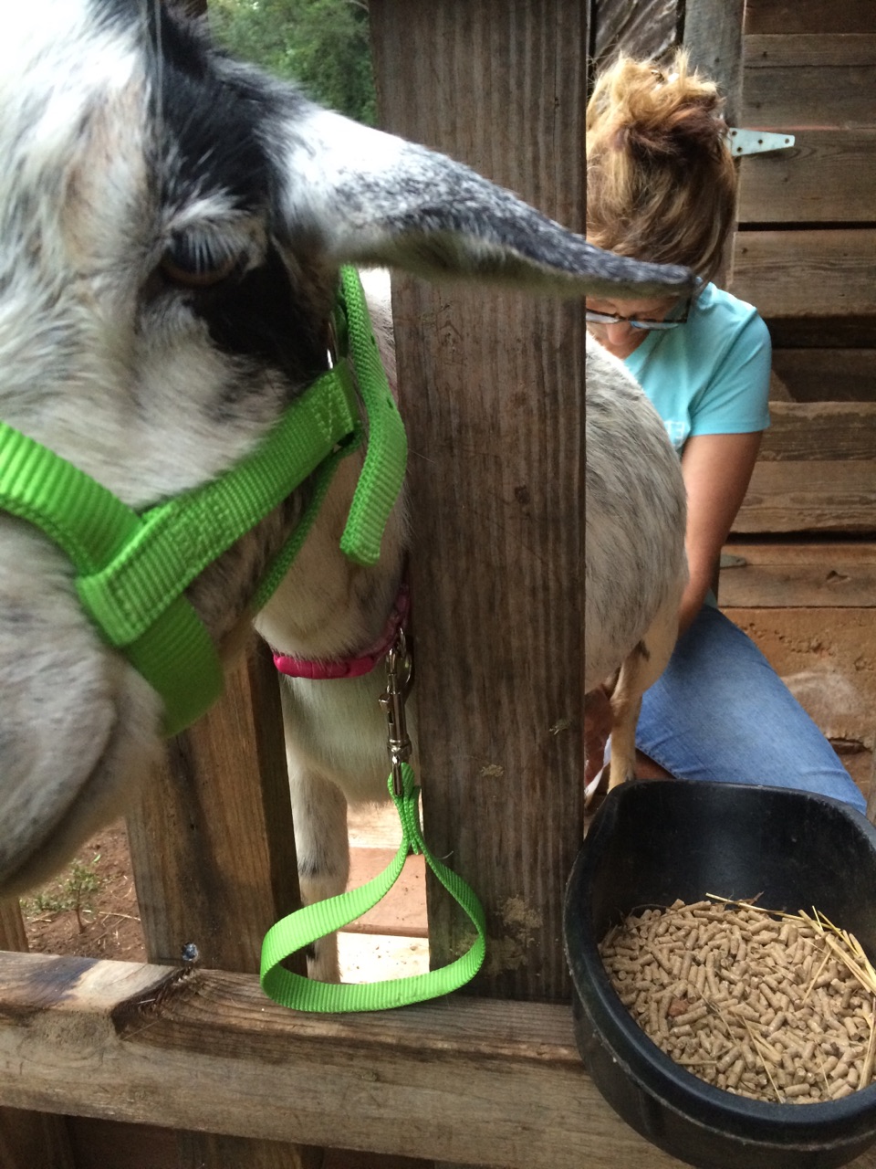 In August, my friend Lisa stopped by for a surprise Sunday visit. When the rainstorm stopped, I looked at my teenaged godson and asked, “Want to hold my goat?” He looked up from his phone and said, “Aunt Janet, I think I’m really tired.”