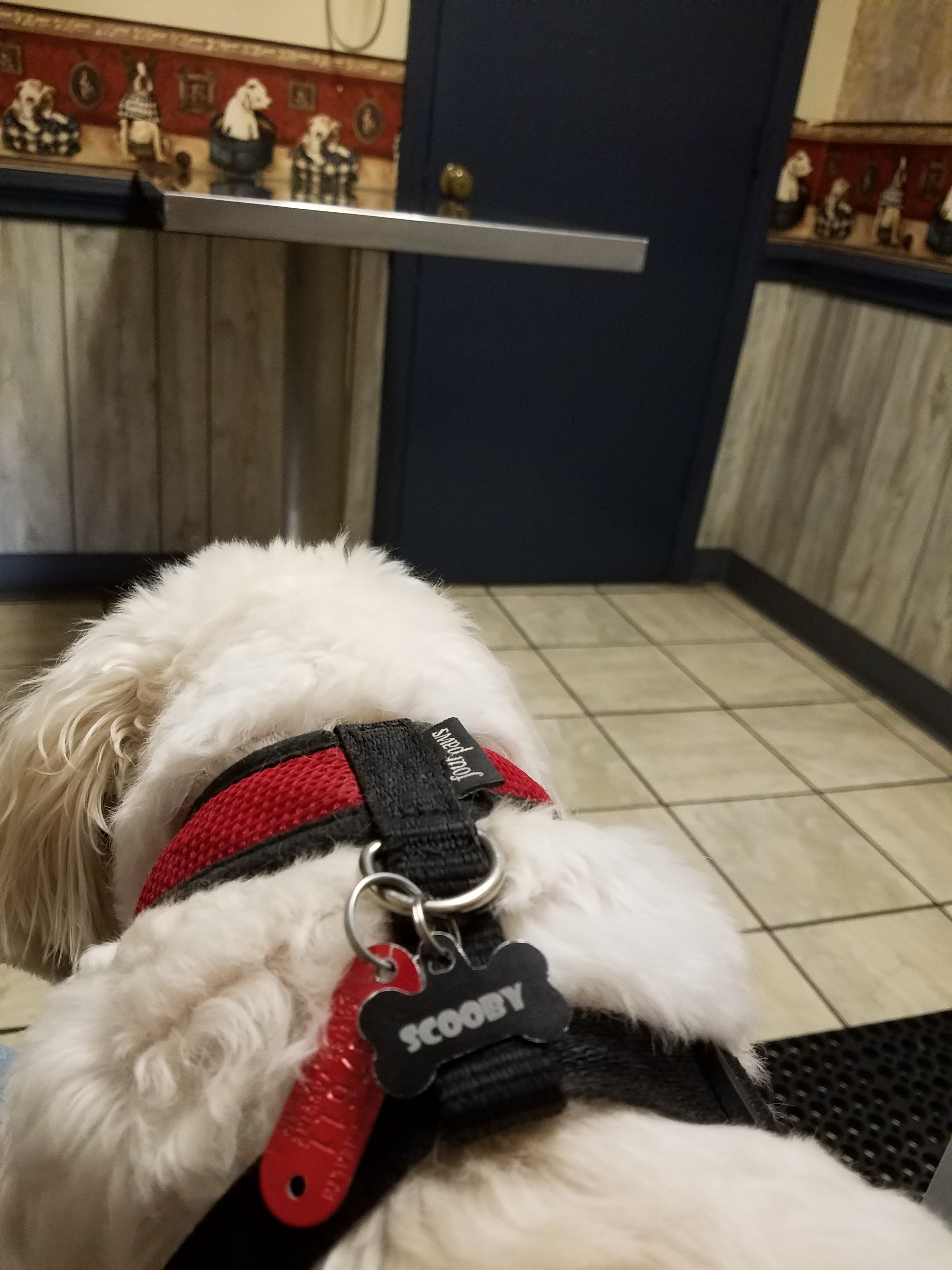 Having lost our 14 year old cairn terrier last year to kidney failure, my mind raced with every imaginable what-if scenario for Scooby. We’re uncertain of his age because he appeared on our doorstep 7 years ago matted, tired and wearing a wire collar.  Yes, a collar made of wire. We think that he may have been a backyard breeder dog, or he lived with someone who had no appreciation for this bundle of fur. At his first checkup,  the vet estimated Scooby to be around 6 years old. So, his official record has him at 13 years old.