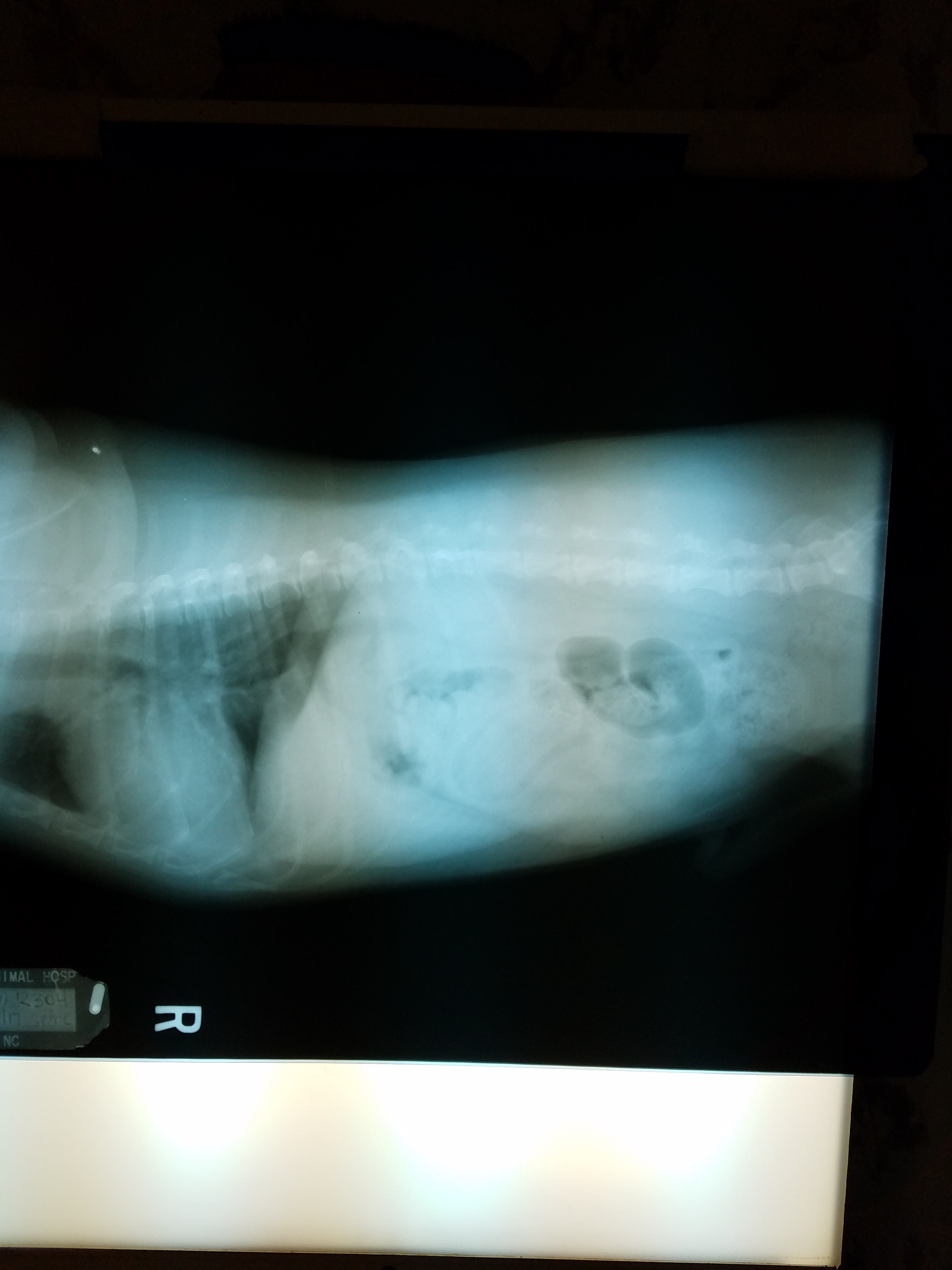Two x-rays later revealed air pockets in his caecum  (the first part of the large intestine that looks like a reverse comma) which is very painful. Along with arthritis and muscle atrophy from an old dislocation accident, Scooby has early signs of hip dysplasia. So he gets gas-ex and aspirin. In other words, he’s getting old and gassy. Just like the rest of us.