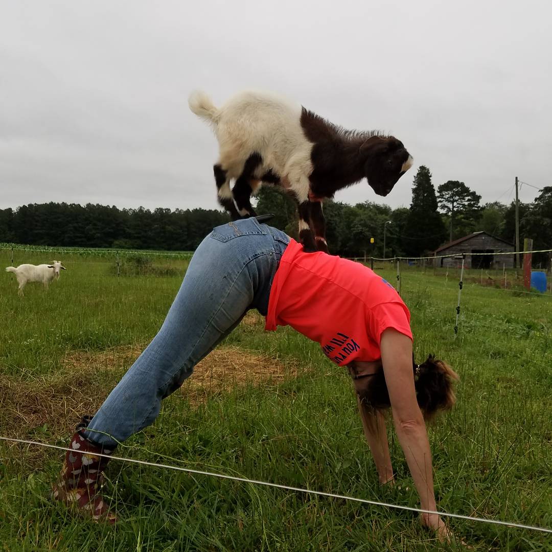 2. Stretch and be sure that you are comfortable balancing your 20 pound goat.