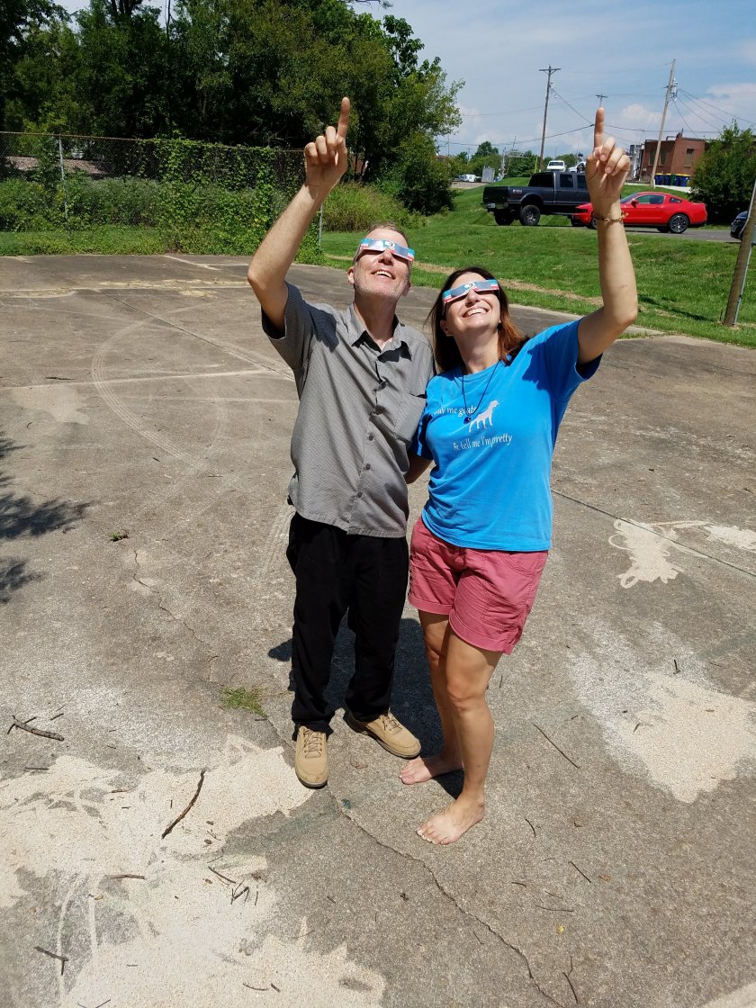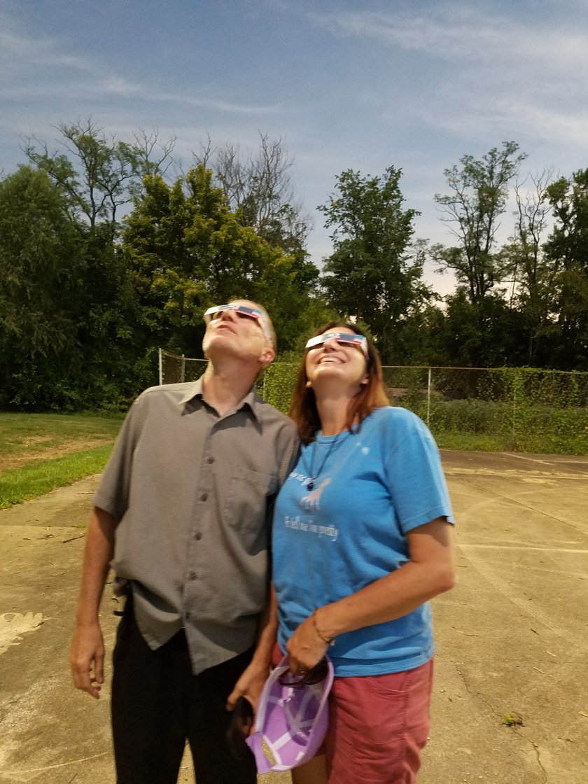 With the childhood memory of not being allowed to go outside because of a fear of burning our retinas,  I bought eclipse glasses. Jim and I discussed the event and we studied the path. At the realization that the path of totality would be near St Louis,  Jim said, “Let’s go visit Jessie.” I jumped at the opportunity. My appreciation of being married to someone who embraces my nerdiness blossomed.