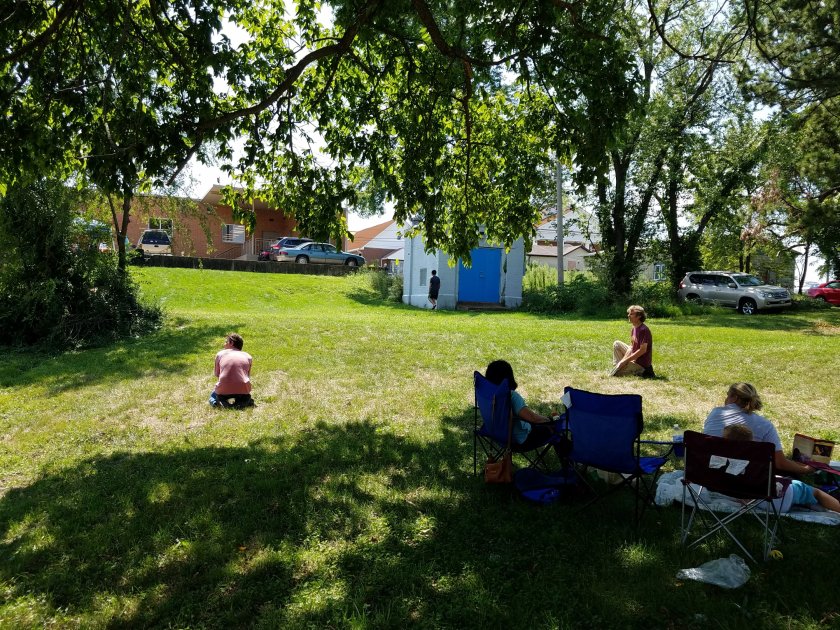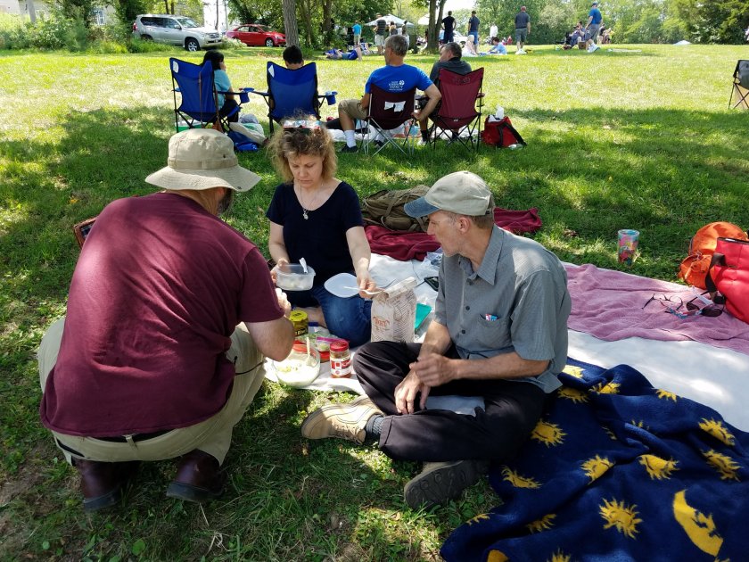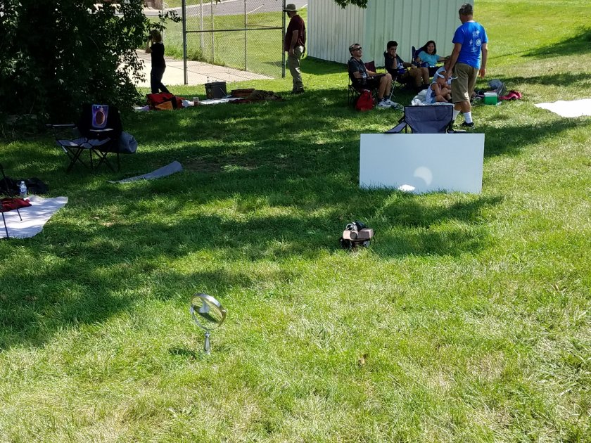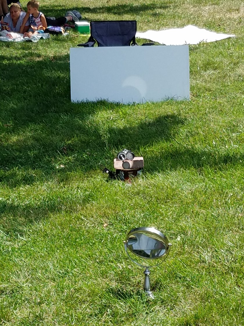 We chatted with strangers of all different faith walks, and we enjoyed a picnic lunch under the tree.  Folks played frisbee, talked about the educational experience, and one group used a mirror, binoculars and white board to project the eclipse in low-tech. It was brilliant.