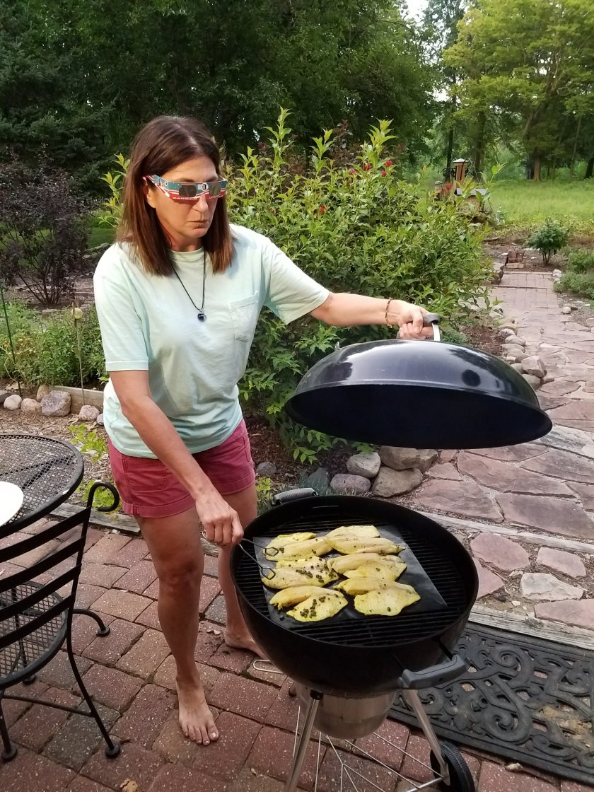 I wore my eclipse glasses to grill tilapia, and made references to songs like “Total Eclipse of the Heart“, “Here Comes the Sun“, And “Staring at the Sun