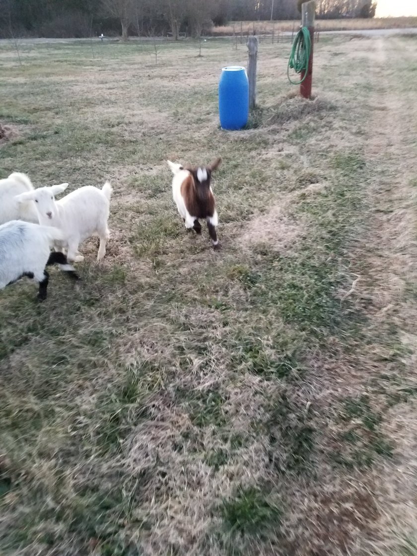 New Year’s Day, I texted my friend Lisa to say we were running late to lunch because, “we had to move Ashy Larry and Tyrone Bigums to the bachelor pad. Lady Gaga had the scours, so she got goat dewormer. ”  Lady Gaga was identified as “the little one with the poopy-butt”.